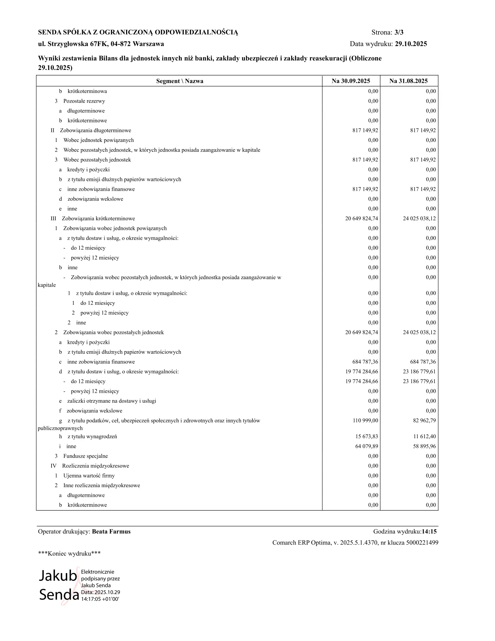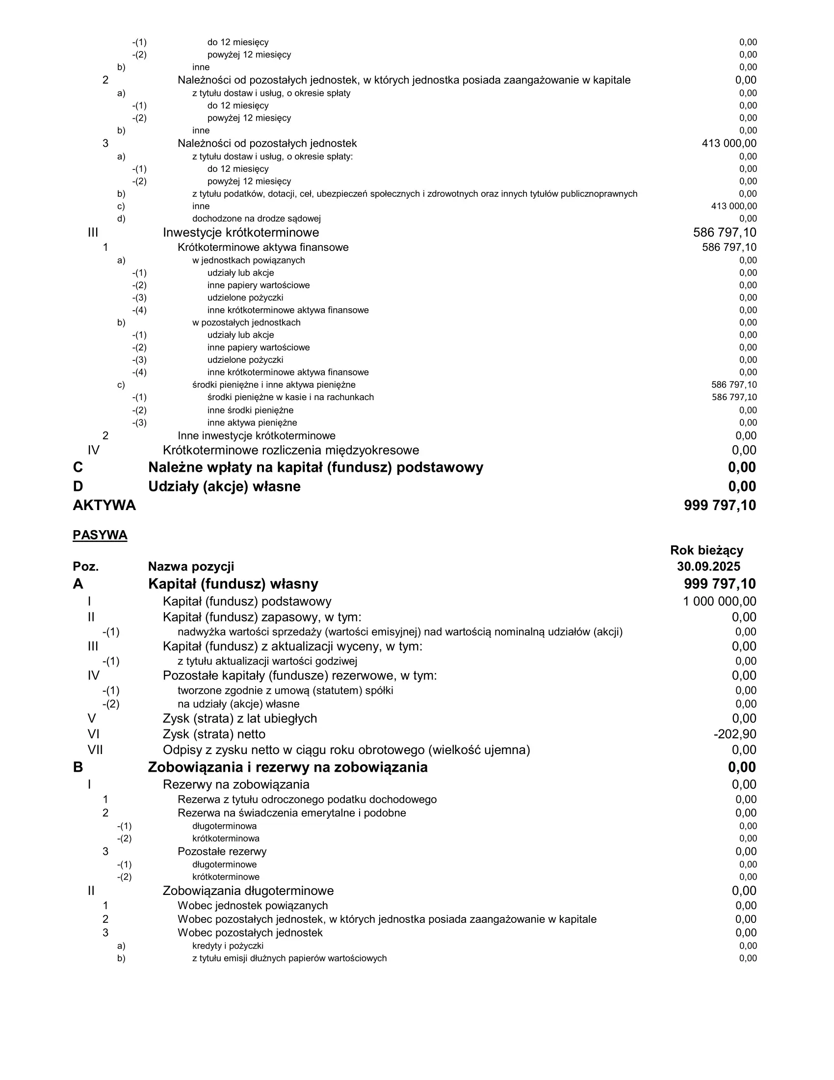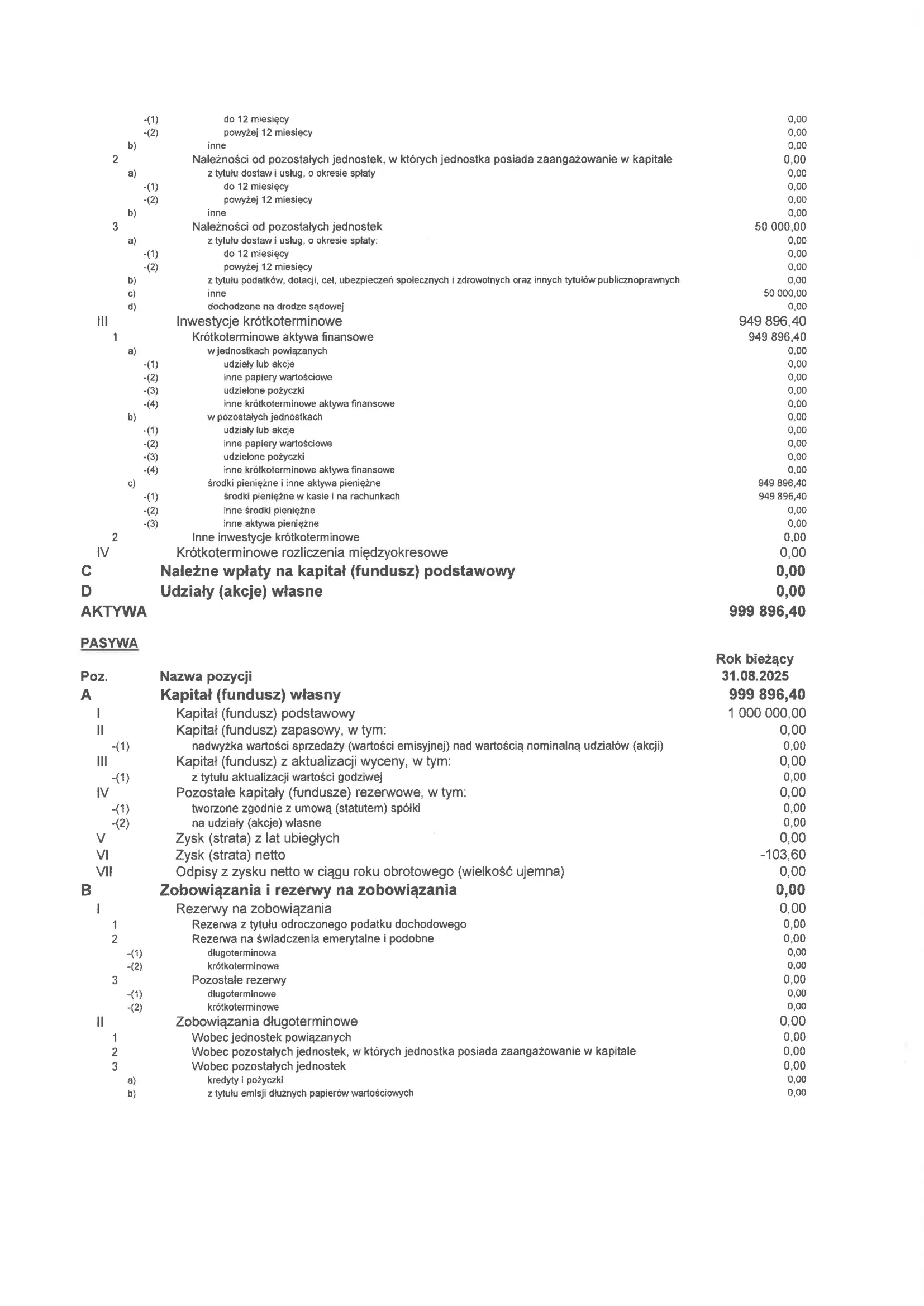 Wysokość kapitału zakładowego: 1.000.000 zł – w całości opłacony.